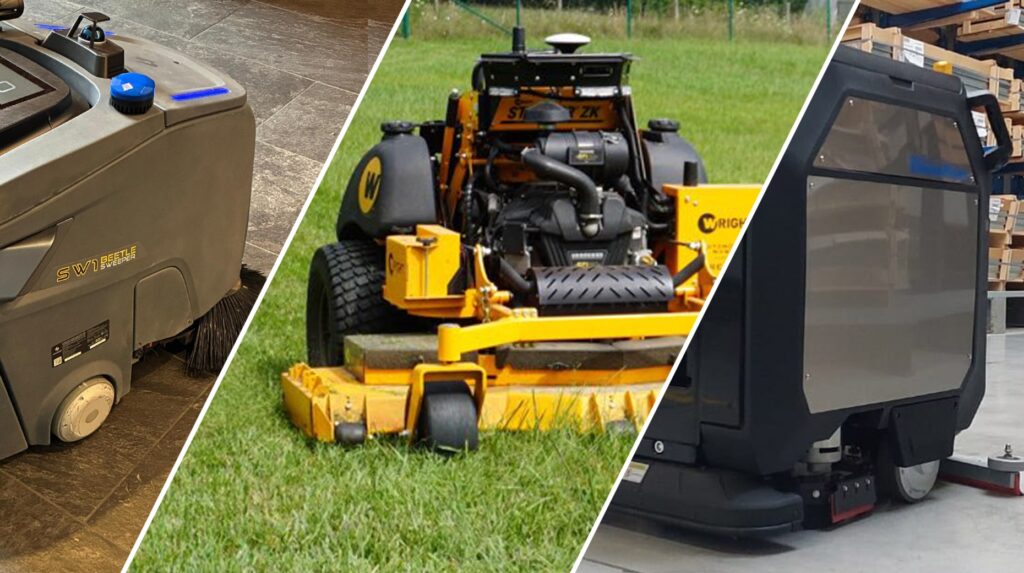 - Outdoor care: Autonomous mowers and sweepers provide consistent coverage across turf and exterior hardscapes—including walkways, plazas, and parking areas.